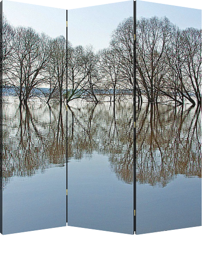 Описание ширмы Весна,река,разлив,рассвет,отражение Весной при разливе рек вода наступает на берега и деревья оказываются в воде. Картина меняется очень быстро и порой принимает такие причудливые картины.