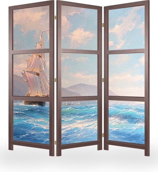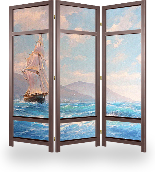 Описание ширмы Картина 2013 года исполнения. Солнечный день на море, парусник на раздутых парусах идёт навстречу к зрителю по синим волнам - что может быть прекраснее и позитивнее?