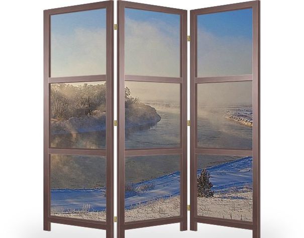 Описание ширмы Только на крещенские морозы река начала сковываться льдом .Берега уже замерзли , а средина реки еще несет редкие льдинки , которые собьются на повороте в кучу и остановят реку .