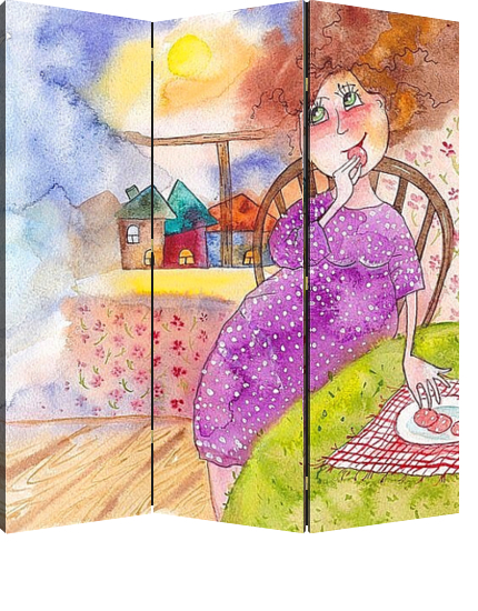 Описание ширмы Воображение - это то, что отличает людей от других людей. Человек с богатым воображением способен преобразить окружающий мир до неузнаваемости и сделать из него сказочную страну. Эта картина посвящена именно таким людям. Они делают нашу жизнь интерес