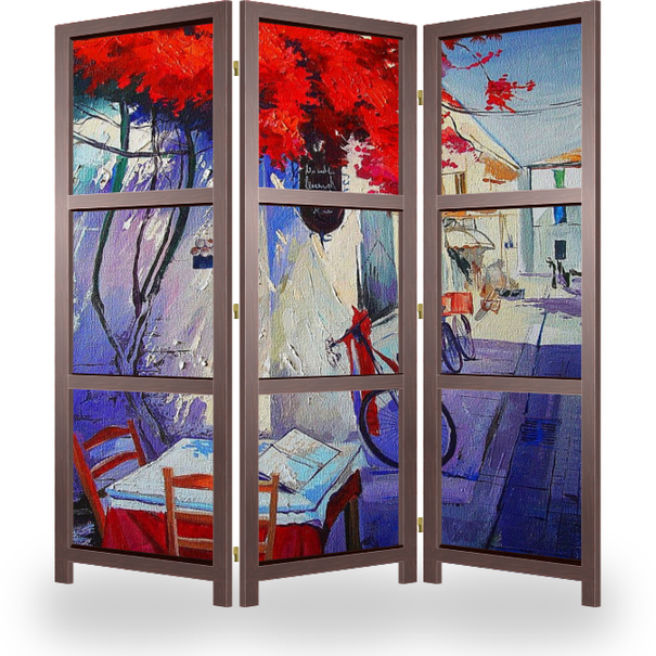 Описание ширмы Очень хорошая новая работа автора. Отлично подойдет почти в любой интерьер. Очень сочные цвета, передает положительную энергетику и способствует хорошему настроению. Работа будет ярким и красивым акцентом вашего интерьера. Южный колорит работы будет