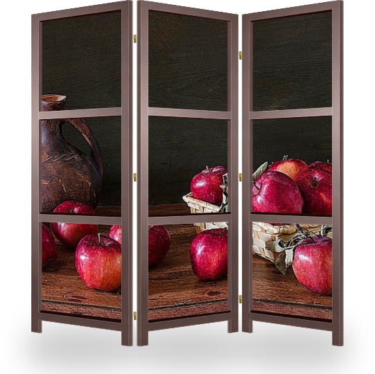 Описание ширмы Как ни странно, такой простой фрукт - яблоко - имеет очень много значений в мифологии и культуре разных стран. У одних народов оно означает весеннее возрождение и радостную любовь, а у других-запретный плод. Двойственный характер любви между женщиной