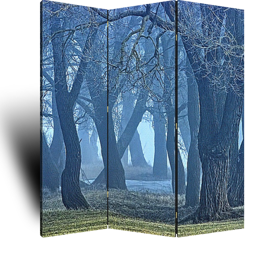Описание ширмы Густой утренний туман, огромные стволы деревьев , туманное утро, теплый зимний туман, предвестие весны, растаявший снег, скоро весна, уходящая зима,аномальное зимнее тепло.