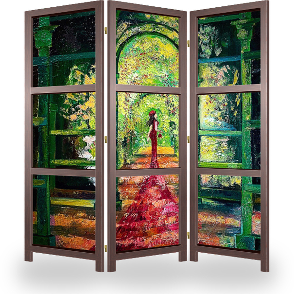 Описание ширмы Девушка в красном мечтает среди тишины в беседке. Картина-постер подойдет для оформления любого современного интерьера, а также станет прекрасным подарком. Если Вам понравились мои работы, добавляйтесь в круг, тк магазин в ближайшее время будет