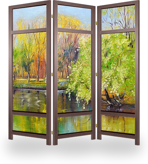 Ширма эконом отлично подойдет для временного размещения, рекламы, для отгораживания объектов интерьера и его дополнения. Лицевая сторона с изображением, обратная сторона открытый каркас