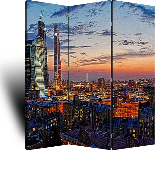 Описание ширмы Это вечерняя панорама центра Москвы с крыши одной из высоток, неподалёку от Киевского вокзала. Несколько дней ловил там разные варианты подходящей погоды и положения солнца :)