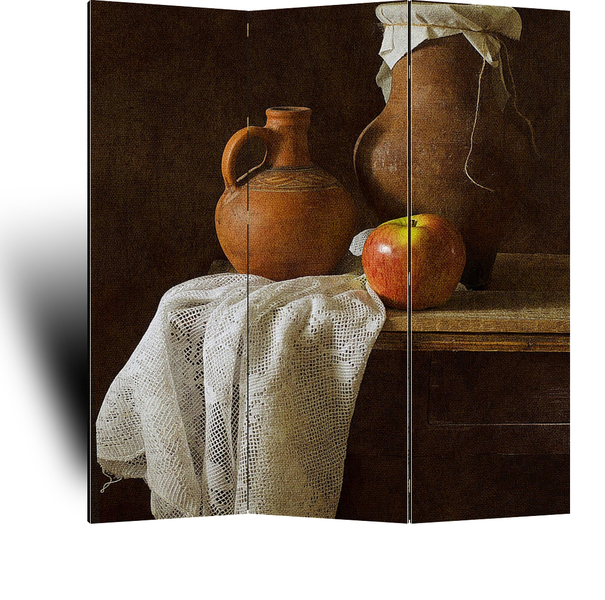 Описание ширмы Если видишь на картине Чашку кофе на столе, Или морс в большом графине, Или вазу в хрустале, Может быть стакан кефира, Литр кваса или торт- Значит эта вся картина Будет зваться - натюрморт.