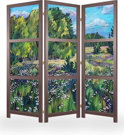 Описание ширмы Картина выполнена масляной пастелью на бумаге для пастели. Эта работа - одна из серии "Широка страна моя родная..." Картина украсит любой современный интерьер, будет очень хорошо смотреться в сочетании с другими картинами этой серии.