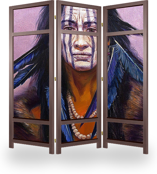 Описание ширмы Автор работы: Владислав Штельц; материалы картины: масло, холст; размер картины 50см х 70см; год создания 2014. Оригинал картины находится в частной коллекции. Картина "Молодой Вождь" заняла 3-е призовое место в номинации “Сюжетный портрет” на Между