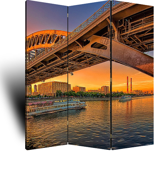 Описание ширмы Насыщенные краски великолепного Московского заката не могли оставить меня равнодушным. Идущий по реке Москве прогулочный теплоход очень дополнял общий вид.