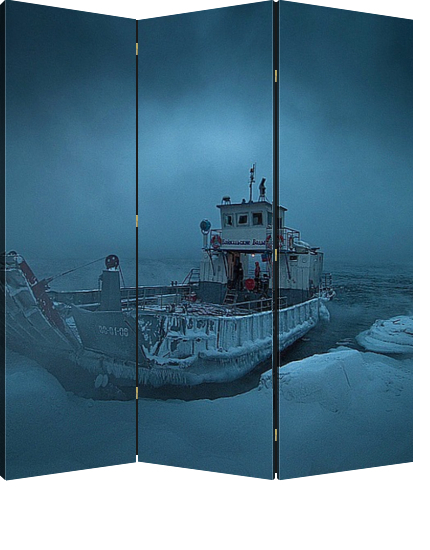 Описание ширмы Снимок был сделан на пристани Листвянки. Для того, что бы снять паром, я неделю жил в Листвянке, в ожидании нужной погоды. Почти перед самым Новым годом ударил мороз. Время наступило...
