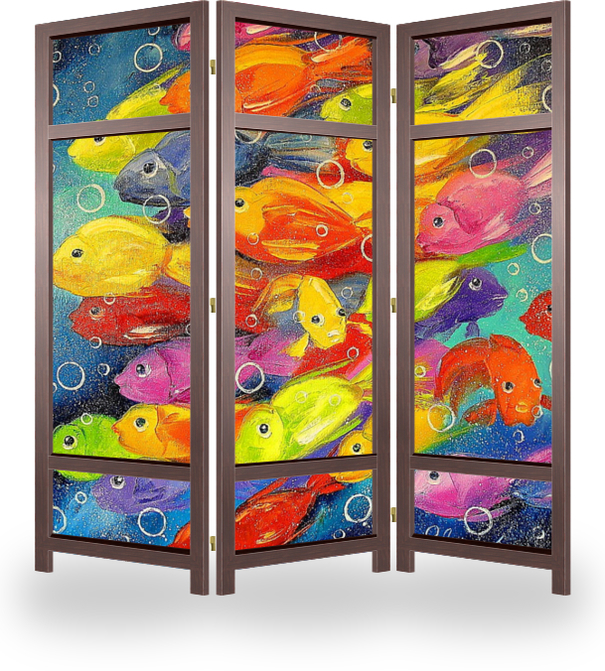 Описание ширмы Картина маслом на холсте,картина маслом на подарок,картина маслом для интерьера,картина маслом красивая,живописные холсты,постер,принт,подводный мир,рыбы,импрессионизм