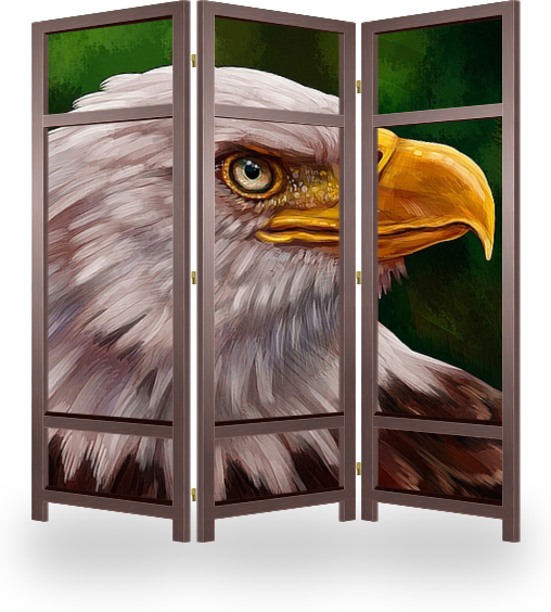 Описание ширмы Орлы (лат. Aquila) — род крупных птиц семейства ястребиных. Длина тела 75—88 см, хвост довольно короткий, крылья широкие, до 2,4 м в размахе, ноги оперены до пальцев.