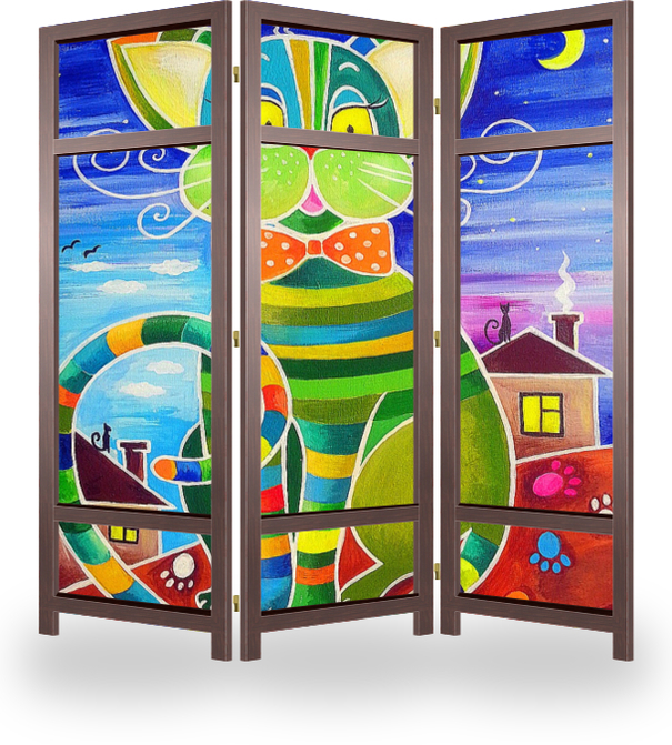 Описание ширмы Этой весёлый счастливый котик будет не только красочным украшением вашего интерьера, но и непременно будет поднимать настроение! Кот, который живёт на крыше! Прекрасный подарок как ребёнку так и взрослым!