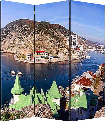 Описание ширмы Балаклавская бухта – восьмое чудо света. Во всяком случае, в этом убеждены местные жители, которые считают ее красивейшей бухтой планеты. Это действительно один из самых живописных уголков Земли. Балаклавская бухта является последствием тектон