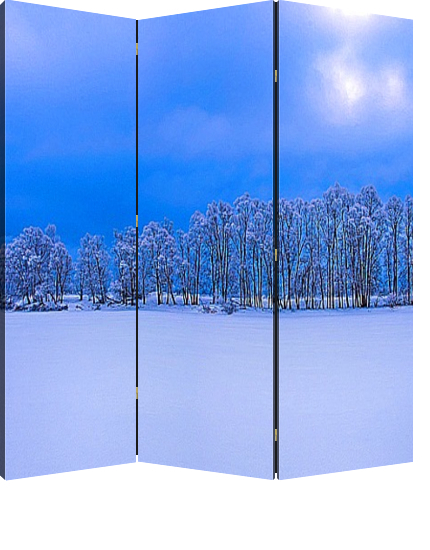 Описание ширмы Вроде обычный зимний день, только какой-то мягкий свет и иней на деревьях , а еще мороз пробирает . А небо в пастельных тонах играет мягкими красками .