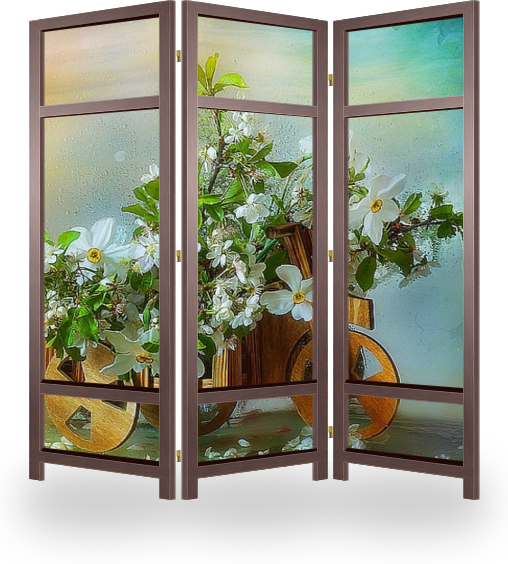 Описание ширмы Яркая и теплая весенняя картина наполнит Ваш дом очарованием тепла и весенней свежести. Работа будет великолепно смотреться в любой комнате, радуя и даря положительные эмоции.