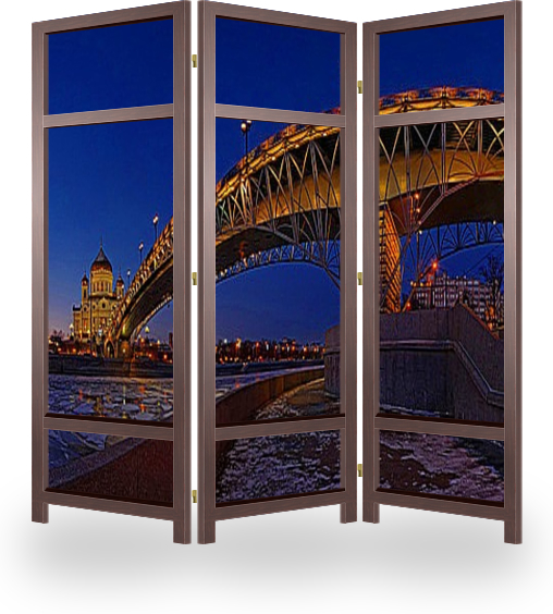 Ширма эконом отлично подойдет для временного размещения, рекламы, для отгораживания объектов интерьера и его дополнения. Лицевая сторона с изображением, обратная сторона открытый каркас