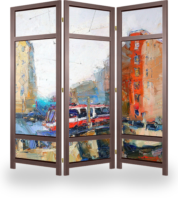 Описание ширмы Картина из серии "Состояние Петербурга" написана художником Константином Сухоплюевым. Сам художник Родился и вырос в Санкт-Петербурге. С ранних лет ему знаком запах масляных красок, он постоянно находился в художественных кругах, поскольку отец Конст