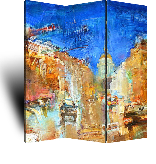 Описание ширмы Картина из серии "Состояние Петербурга" написана художником Константином Сухоплюевым. Сам художник Родился и вырос в Санкт-Петербурге. С ранних лет ему знаком запах масляных красок, он постоянно находился в художественных кругах, поскольку отец Конст