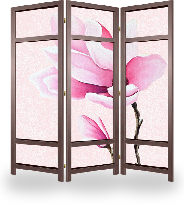 Описание ширмы Композиция картины очень проста - цветок магнолии с бутоном выполнен масляными красками на фоне с необычной текстурой. Есть еще две подобные картины, но имеющие разную композицию. Даже самым юным мечтательницам картина придется по душе.