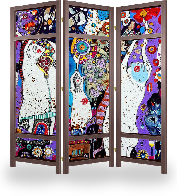 Описание ширмы Авторская работа Наталии Пастушенко. Выполнена тушью и красками на холсте. Является частью большой серии работ на холсте, техника которых уникальна тем, что соединяет в себе элементы живописи и графики. Больше работ можно увидеть на моей страничке na