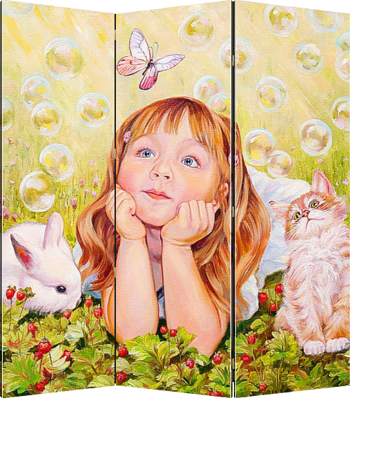 Описание ширмы Мы все мечтали в детстве, о разном , иногда не возможном, все казалось осуществимым, не было преград полету нашей фантазии, летали во сне и наяву, и каждый был уверен в своих невероятных способностях. Так вот эта картина о детских мечтах таких близки