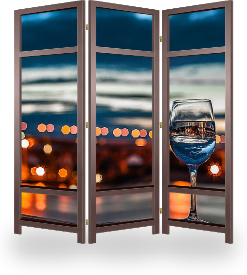 Описание ширмы бокал с водой, на фоне городского пейзажа. Красивая фоновая фотокарточка. С сильно выраженным, характерным пейзажным закатом. Приятного просмотра.!!!!