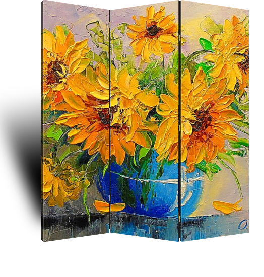 Описание ширмы Букет подсолнухов в вазе,картина маслом на холсте,цветы,постер,принт,природа,импрессионизм,картина маслом для интерьера,картина маслом на подарок,живописная картина маслом,натюрморт