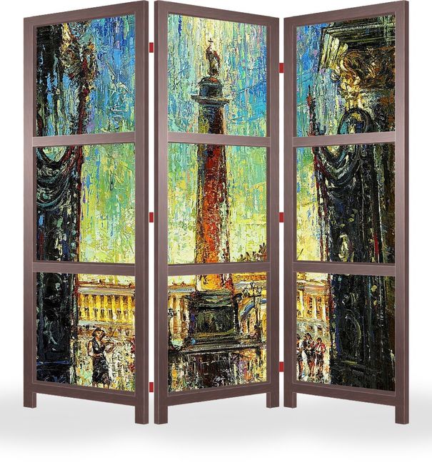Описание ширмы Санкт Петербург. В центре Дворцовой площади, Александрийский столб, вершину которого коснулся стопою Ангел хранитель, прекрасного. Что воспеты в живописи, скульптуре, музыке и архитектуре.