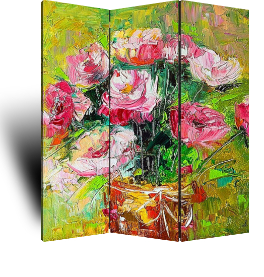 Описание ширмы Работа москвоской художницы Любови Купцовой. выполнена маслом на холсте мастихином. Яркий, сочный букет роз придаст интерьеру нежности. яркости. Внесет атмосферу творчества и красоты.