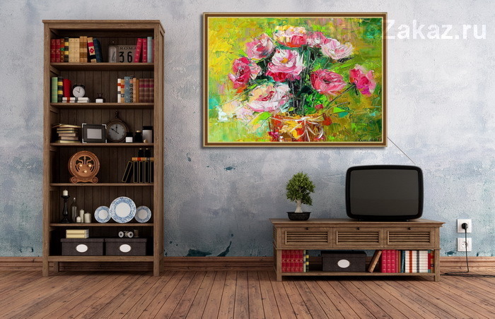 Картина сначала типографским способом переносится на холст, получается "тусклый" отпечаток низкого разрешения , затем художник расписывает ее маслом. Роспись выполняется поверх контура изображения на хлопковом холсте. Холст заполняется маслом не менее чем на 80% поверхности , при этом техника Автора может не выдерживаться, допустимы отклонения в оттенках. Срок изготовления 6-7 рабочих дней . Роспись художником это наиболее оптимальное соотношение цена/качество.
