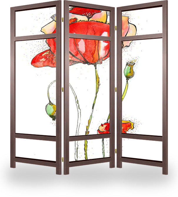 Описание ширмы Работа выполнена московской художницей Любовью Купцовой. Материалы : бумага, акварель, тушь. Яркие, сочные, летние цветы внесут в интерьер яркие краски