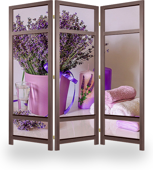 Описание ширмы Лаванда и лавандовое масло-излюбленные косметологические средства. Этот натюрморт в стиле Прованс предназначен для спа-салонов,косметических кабинетов ,ванных комнат.