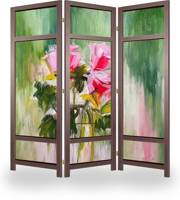 Описание ширмы Цветы украшение интерьера, работа написана в теплых тона и подойдет и будет украшать ваш дом,квартиру,офиса,ресторана или кафе. Отличный подарок на любой праздник. Холст,масло размеры 44*50 см.