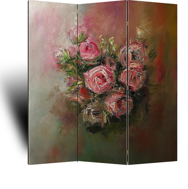 Описание ширмы В композиции картины написан букет роз, Он заполняет всю центральную часть,создавая ощущение,будто смотришь на него сверху. Цветы всегда является украшением любого интерьера. Холст,масло 44*50 см.