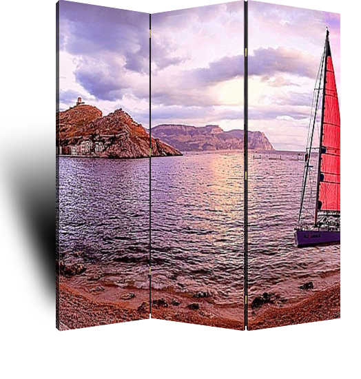 Описание ширмы Эту панораму залива я сняла в вечерней Балаклаве...Захотелось немного пофантазировать и так родился коллаж...Это постер прекрасно украсит любое помещение в вашем доме и создаст в нём романтическое настроение...