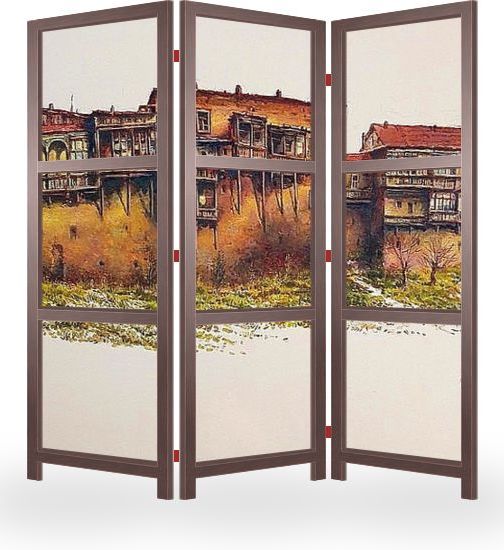 Описание ширмы На картине "Старые дома около Метехи" (оригинал - графика, бумага / акварель & гуашь, 35х53 см., 2016 г.) изображен фрагмент старого города, рядом с Курой.