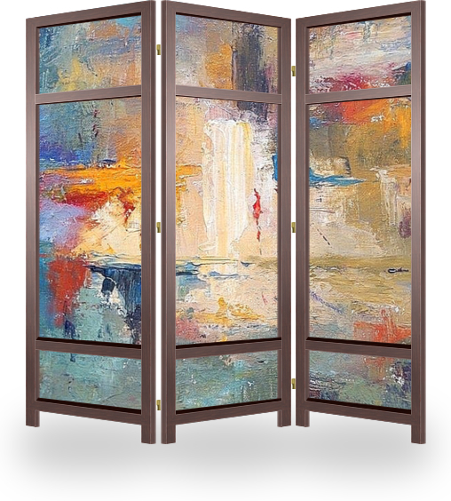 Описание ширмы Живописное полотно "Жаркий летний день" (оригинал - живопись, холст / масло, 24х30 см., 2010 г.) является абстракцией, ассоциацией конкретного настроения, вызванного солнечным деньком.