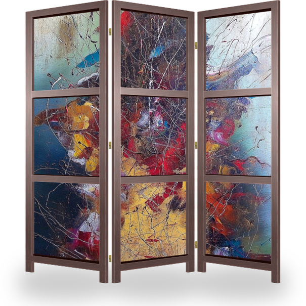 Описание ширмы Картина "Женщина у моря" (оригинал - живопись, холст / масло, 104х65 см., 2004 г.) представляет аллегорическое изображение молодой женщины, сидящей спиной к зрителю и с ожиданием смотрящей за горизонт.