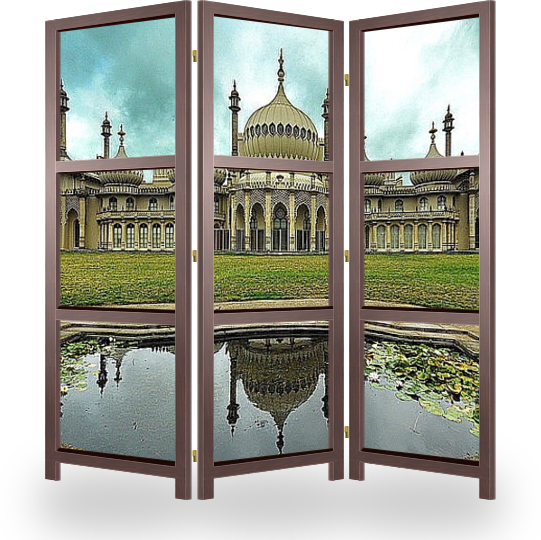 Описание ширмы Брайтон Великобритания! Здание Королевского павильона построен по проекту архитектора Кристофера Рейну.Королевский павильон экзотический дворец в центре Брайтона с богатой историей. Построенный как дворец море удовольствия для короля Георга IV, этот
