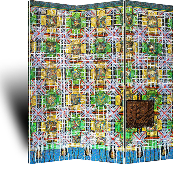 Описание ширмы Символическая композиция , абстракция , размер 70х85см . картон , масло , травление на меди. Работа представляет одно из направлений моего творчества . Выполнена в 2000г. работаю в разных направлениях ( портрет , пейзаж , символические композиции , г