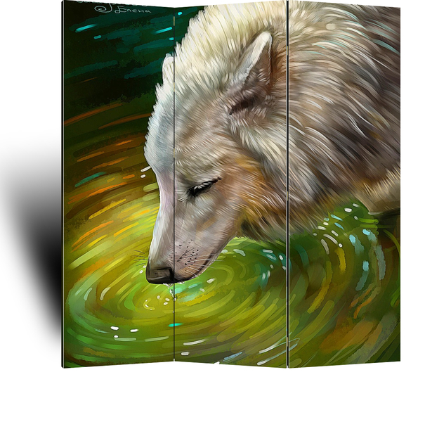 Описание ширмы Рисунок нарисован в программе графический редактор - Пэинт Тутол Саи изображен большой белый волк. Портрет. Рисунок выполнен крупными мазками. Цифровая графика