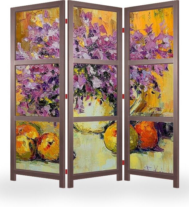 Описание ширмы Солнечный натюрморт в теплых и ярких тонах напомнит о лете в долгие зимние вечера. Картина украсит ваш дом или офис, либо может стать прекрасным подарком.