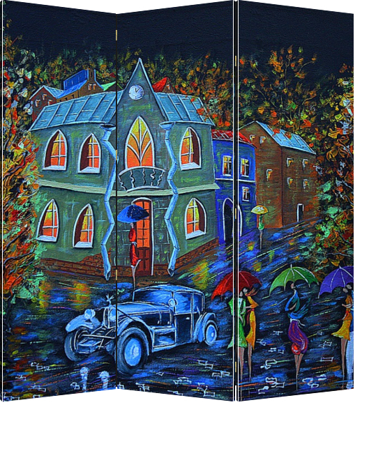 Описание ширмы Ночная магистраль, черная петля Вложив остатки сил в поворот руля Врываюсь в мир огней и случайных встреч Оставив за спиной все что не сберечь И вновь за пеленой непроглядных штор Немедленно начнем древний разговор И сбросив в темноте грусть ин