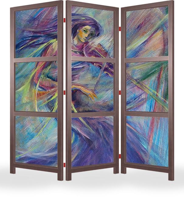 Описание ширмы Абстрактная картина с изображением юной девушки - скрипачки, исполняющей музыкальную композицию на скрипке в вихре музыки. Авторская живопись. Масло. Холст.