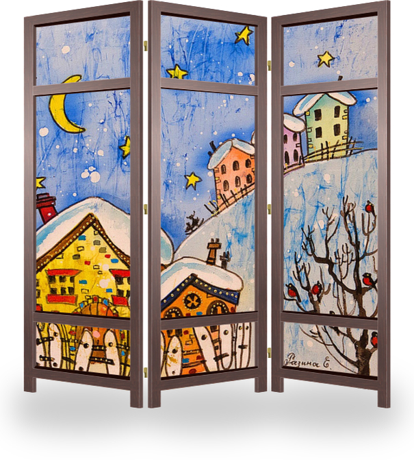 Описание ширмы картина выполнена в технике "горячий батик" специальными красками. Картина проработана мелким орнаментом. Подойдёт для оформления гостиной, спальни,детской. Выполнена в сказочном,детском стиле