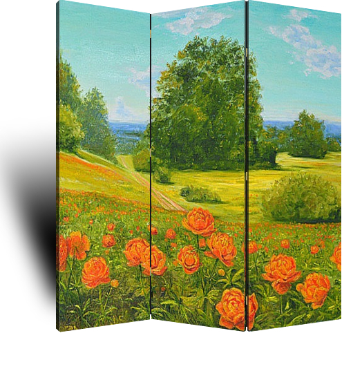 Ширма эконом отлично подойдет для временного размещения, рекламы, для отгораживания объектов интерьера и его дополнения. Лицевая сторона с изображением, обратная сторона открытый каркас