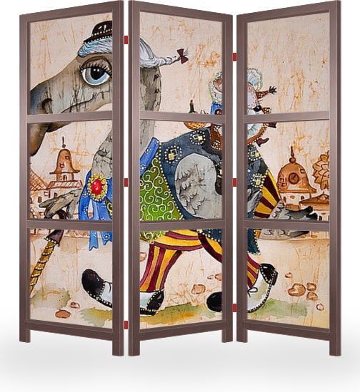 Описание ширмы Оригинальная картина выполнена в технике "горячий батик" специальными красками. Картина проработана мелким орнаментом. Подойдёт для оформления гостиной, спальни, детской По мотивам сказки "Алиса в стране чудес"
