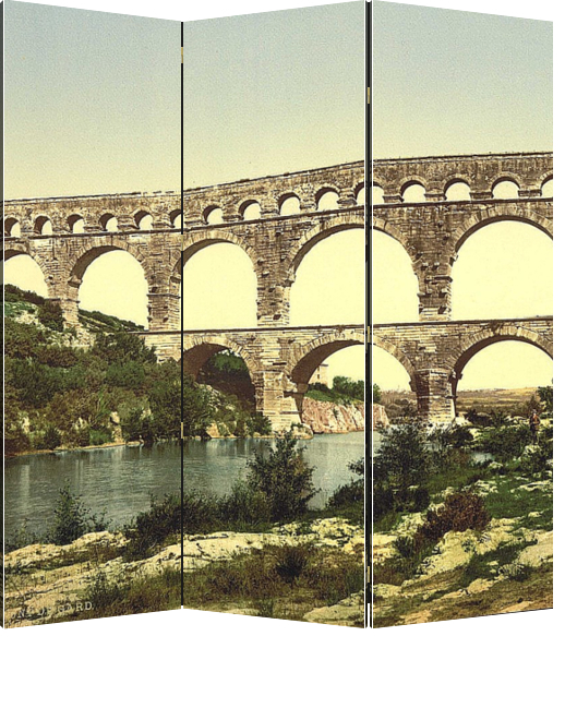 Ширма "Римский мост через Гар, построенный Агриппой, Ниме, Франция.1890-1900 гг"